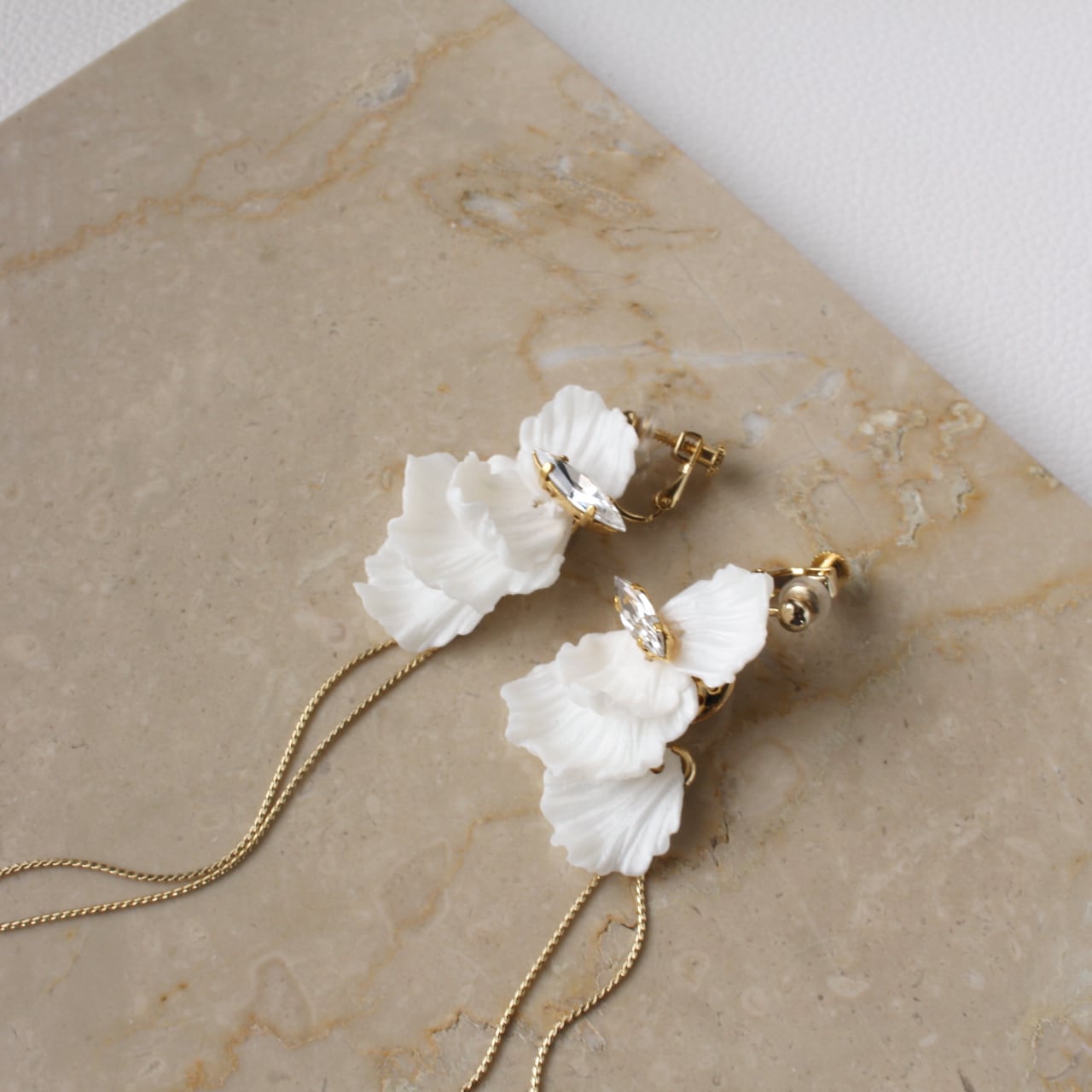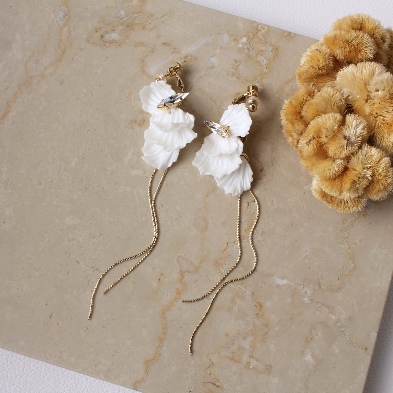 ホワイトカラーにラメが入った花びらはブランドオリジナルパーツです